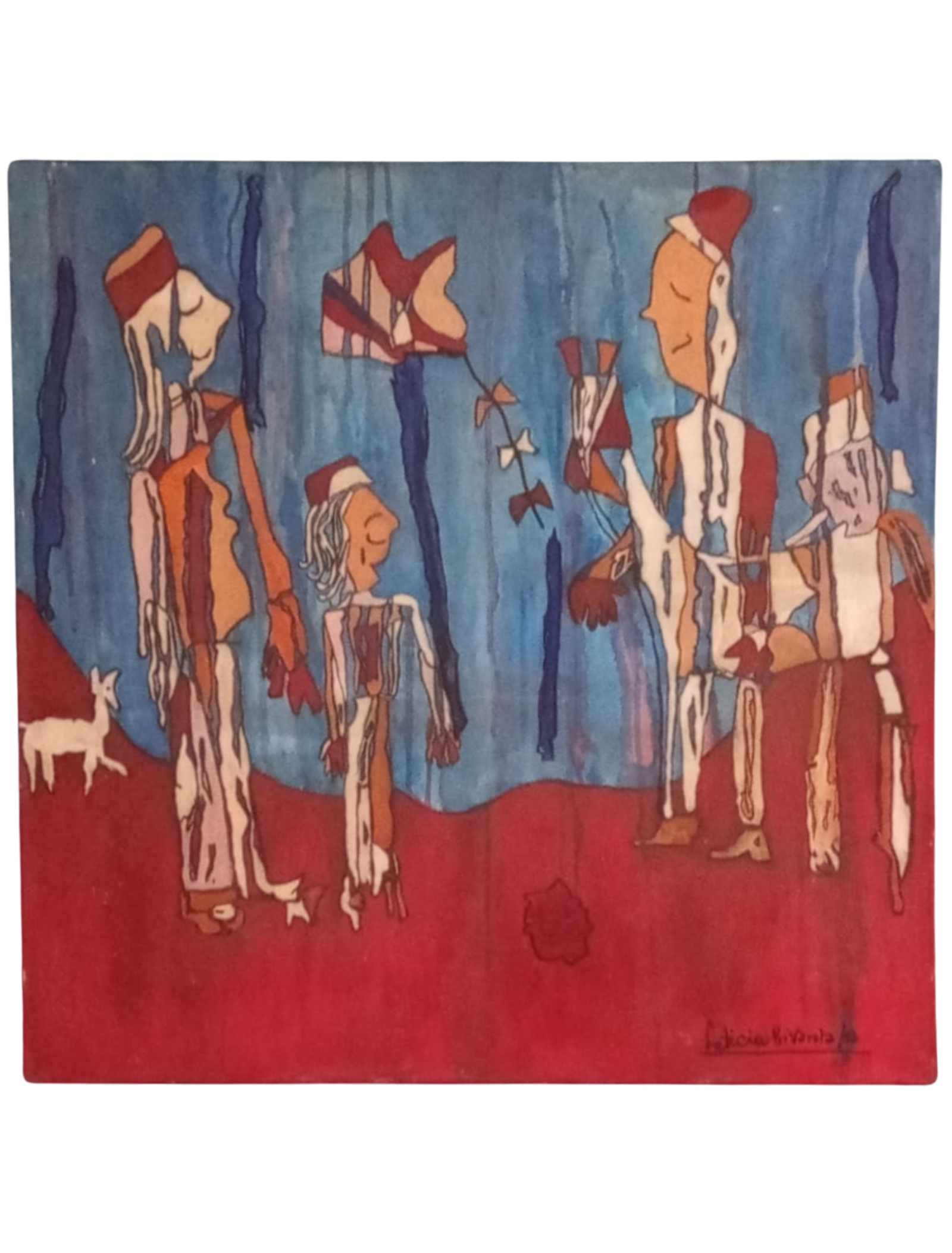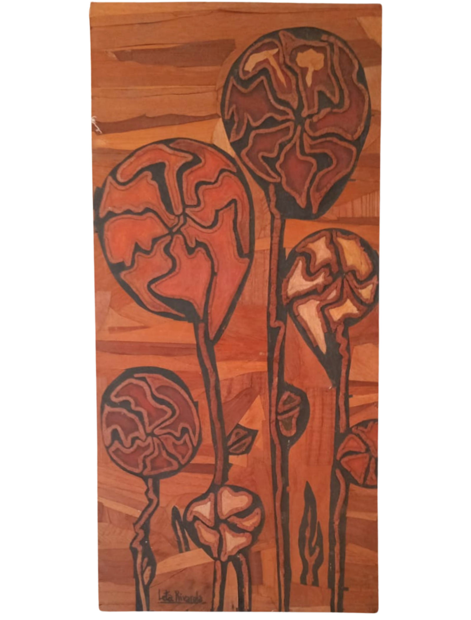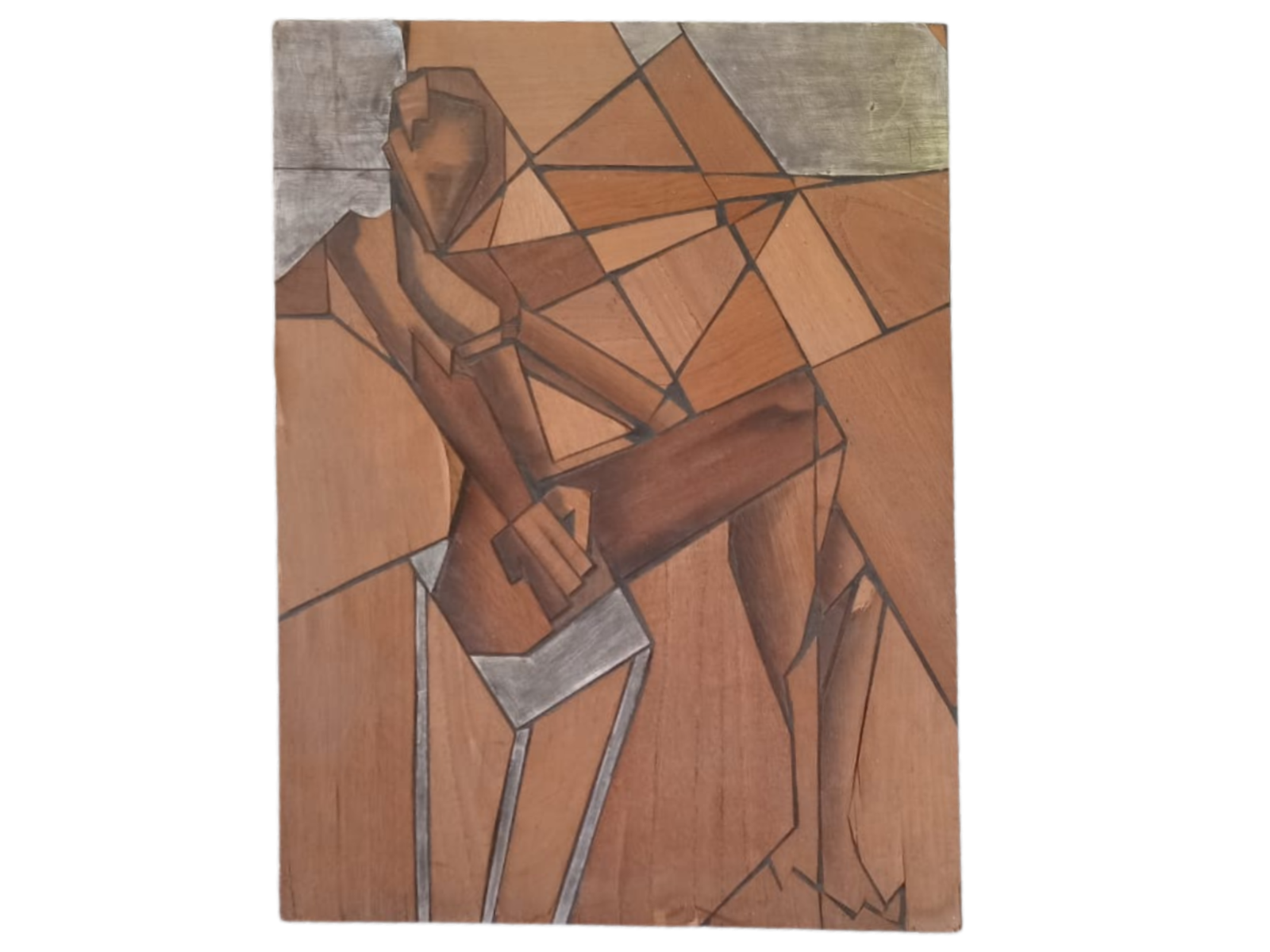 Técnica: enchapado de madera sobre bastidor de madera. Acrílico.